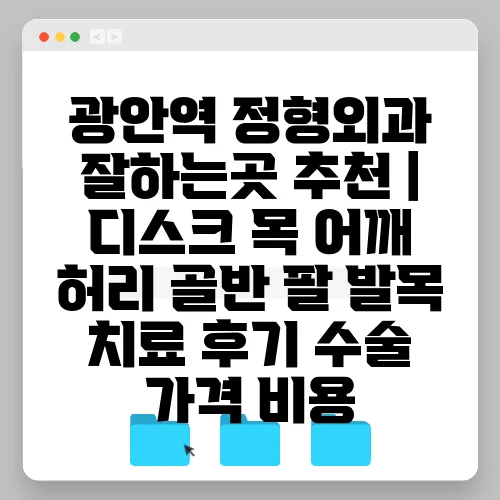 광안역에서 추천하는 정형외과 병원은 다음과 같습니다. 특히 각 병원의 특징과 환자들의 후기를 바탕으로 추천할 만한 곳입니다.