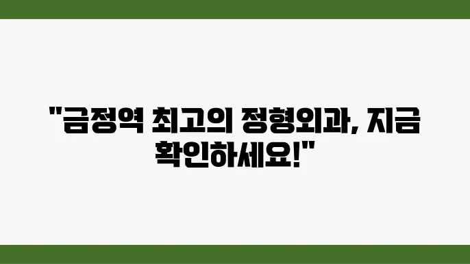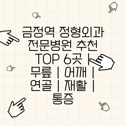 금정역 주변에는 다양한 정형외과 전문 병원이 있습니다. 이 중 '금정 정형외과'와 '신경외과 전문병원'은 무릎 통증 치료에 특별한 전문성을 가지고 있으며, 최신 장비와 풍부한 경험을 갖춘 의료진이 있습니다. 또한, 물리치료 및 재활 프로그램도 함께 운영하여 통증 완화에 효과적입니다.