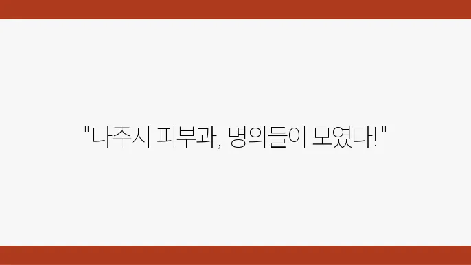 | 나주 피부과 | 종합적인 피부 치료 및 상담 제공 | 4.8/5 | 친절한 직원과 최신 장비가 갖춰져 있음 |