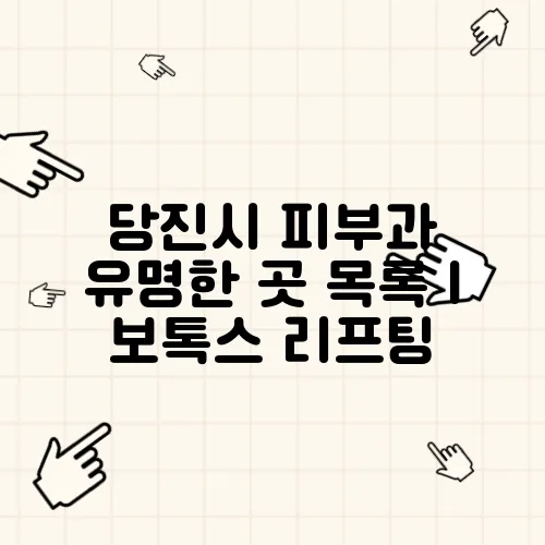 | 당진 메디컬 피부과 | 전문적인 보톡스 및 필러 시술 제공 | 4.8/5 | 시술 후 관리 프로그램 제공 |