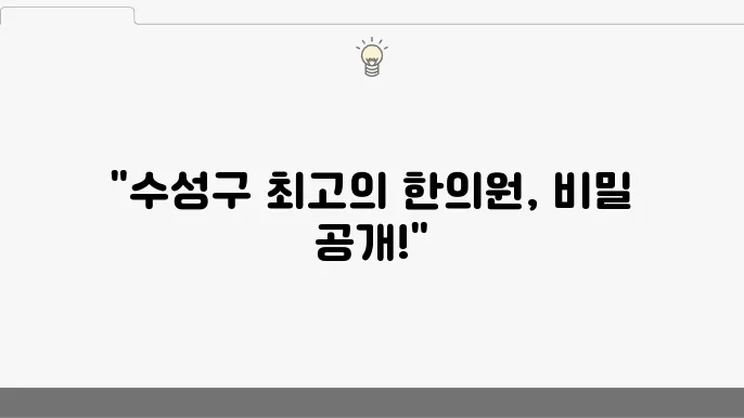 수성구에 위치한 주요 한의원들에 대한 정보와 각각의 특별한 치료 방법을 소개합니다. 아래 표를 통해 해당 한의원들의 특성과 치료 효과를 비교할 수 있습니다.
