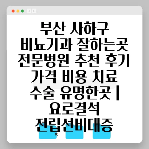 부산 사하구 비뇨기과 치료 비용 및 정보