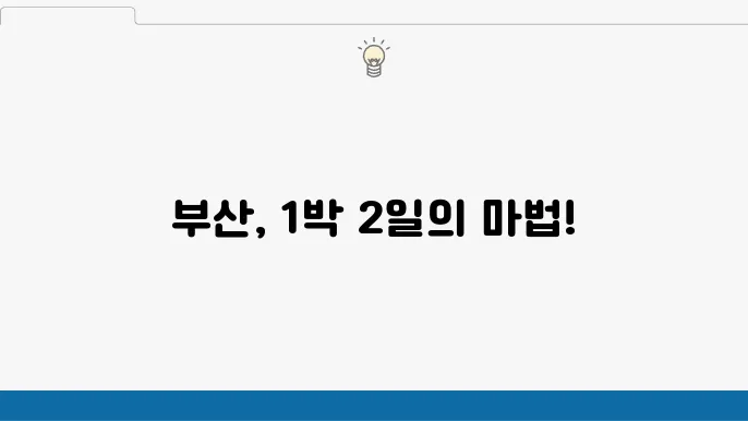 부산에서 1박 2일 여행 시 놓치지 말아야 할 명소는 무엇인가요?