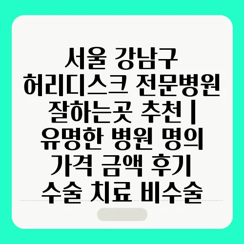 서울 강남에는 다양한 허리디스크 전문병원이 있습니다. 각 병원마다 장단점이 있으며, 선택은 환자의 필요와 상태에 따라 달라질 수 있습니다. 아래의 정보는 병원별 특성과 치료 가격을 포함한 표입니다.