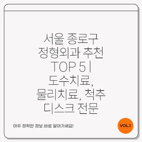 종로구에는 여러 우수한 정형외과가 있습니다. 그 중에서 추천하는 TOP 5는 다음과 같습니다: