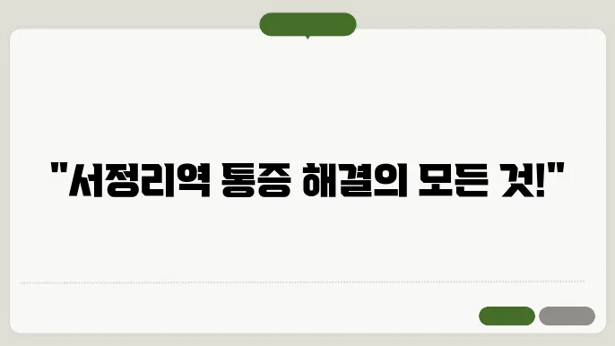 무릎 통증의 원인은 다양합니다. 서정리역 근처의 정형외과에서 엑스레이나 MRI 촬영을 통해 상태를 정확히 진단한 후 적절한 치료법을 제시받는 것이 중요합니다. 추천할 만한 병원으로는 '서정리 통증의학센터', '이동훈 정형외과', '서울근로복지공단 정형외과'가 있습니다. 이들 병원은 전문의와의 상담을 통해 개개인의 통증 원인에 맞는 치료 계획을 세워줄 것입니다.