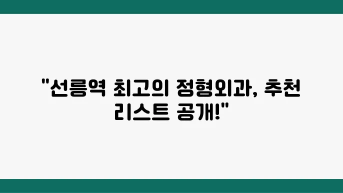선릉역 주변에 추천할 만한 정형외과 전문병원은 어디인가요?