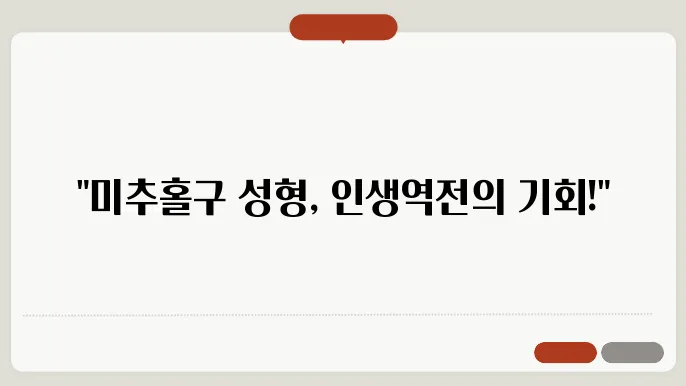 인천 미추홀구는 성형외과의 집중적인 발전으로 많은 이들에게 높은 수준의 의료 서비스를 제공하고 있습니다. 성형외과를 찾는 사람들은 외모에 대한 고민, 자신감 회복, 또는 중요한 행사에 맞춰 외적 변화를 추구하게 됩니다. 그러나 이와 함께 오는 불안과 걱정은 쉽게 사라지지 않습니다. 어떻게 성형외과를 선택해야 할지에 대한 고민은 많은 이들에게 공통적으로 나타납니다. 이에 따라 전문적인 의사를 찾고, 만족스럽고 안전한 시술을 받을 수 있는 병원을 찾는 것이 무엇보다 중요합니다. 특히, 미추홀구에는 이러한 전문병원이 많아, 환자들은 다양한 옵션 중에서 자신에게 적합한 병원을 선택할 수 있습니다. 본 포스팅에서는 미추홀구에 위치한 우수한 성형외과를 추천하고, 각 병원의 전문 분야와 특징을 살펴보겠습니다.