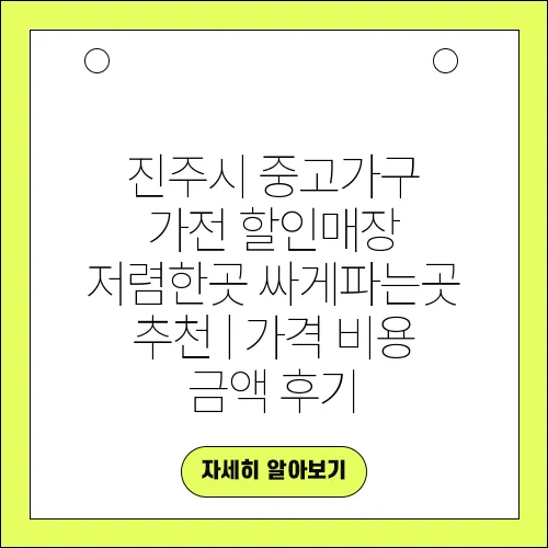 진주시는 중고 가구와 가전 제품을 저렴하게 구매할 수 있는 여러 매장이 있습니다. 이러한 매장들은 품질 좋은 제품을 저렴한 가격으로 제공하여 많은 고객들에게 인기를 끌고 있습니다. 이번 포스팅에서는 진주시의 중고 가구와 가전 할인 매장에 대한 정보를 제공하며, 가격, 비용, 금액, 후기 등을 통해 최적의 선택을 할 수 있도록 도와 드리겠습니다. 중고 가구와 가전이 필요한 분들께 유익한 정보가 될 것입니다.